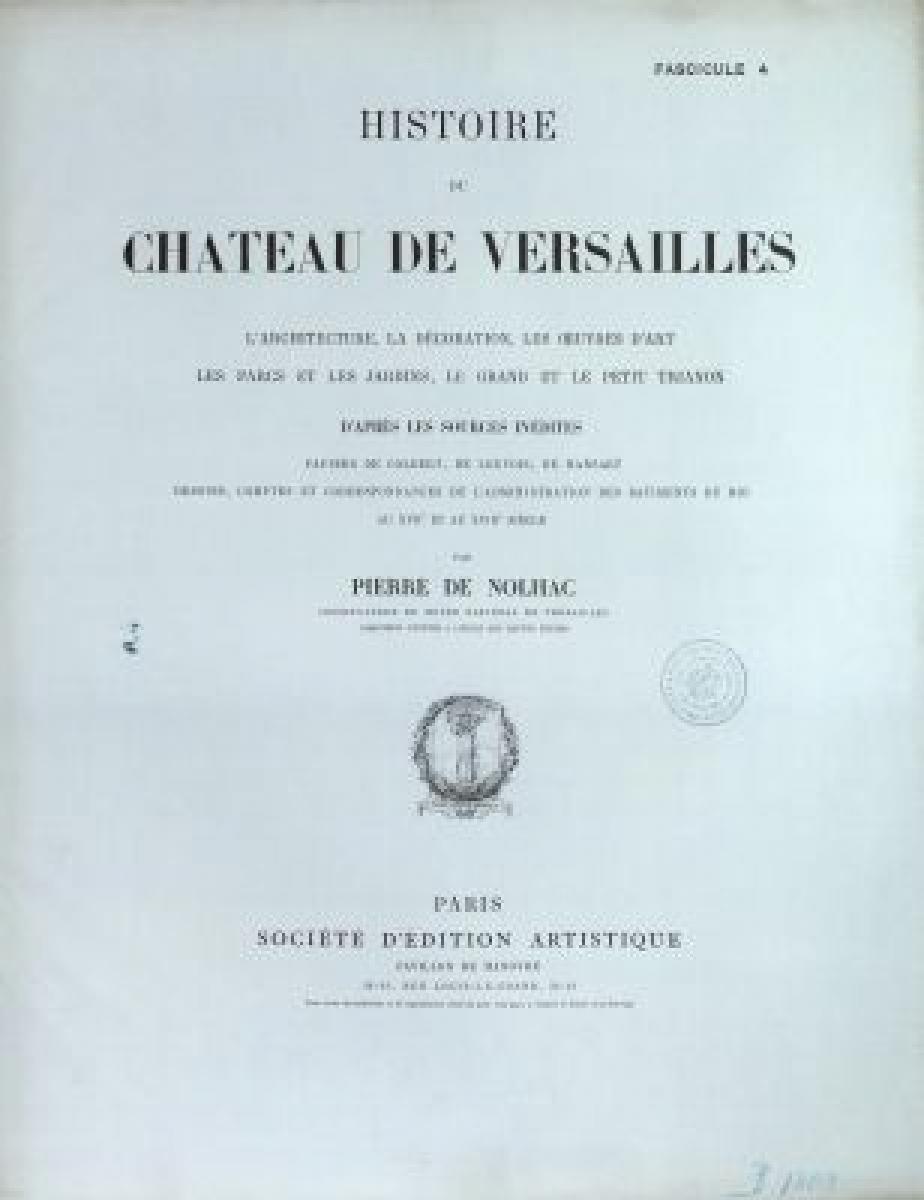 V roce 1899 vychází pětidílná výpravná publikace o zámku Versailles a jeho zahradách. Jednotlivé díly sice obsahují pouze pár stran textu, avšak jsou plné nádherných ilustrací. Nejvíce je jich věnováno zahradám Versailles, ale publikace rovněž obsahují spoustu pohledů na zámek ze všech stran, všemožné fontány, oranžerii a menažerii, jeskyně, chrám lásky nebo malý Trianon. Autorem této publikace je Pierre de Nolhac, pracovník Národního muzea v Paříži.