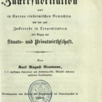 Karl August Neumann působil jako profesor chemie na českém stavovském polytechnickém ústavu, kam ho povolal Franz Joseph Gerstner (jeden ze spolutvůrců dnešního historického fondu Národní technické knihovny). Neumannova kniha o cukrovarnictví vyšla v době počínajícího vzestupu tohoto oboru v Čechách, kdy zde vzniká celá řada nově založených cukrovarů (první průmyslově organizovaný cukrovar v Kostelním Vydří 1829). V krátkém období kolem roku vydání knihy vzniklo v české části habsburského Rakouska kolem padesáti cukrovarů, takže se lze domnívat, že Neumannovo srovnání výroby cukru mohlo mít dopad na teoretickou průpravu tehdejších cukrovarníků. Bonusem knihy jsou rozsáhlé rukopisné vpisky v podobě marginálií i v celostránkové podobě a jistě by byla jejich dešifrace sladkou odměnou pro paleografy, kteří se zabývají obdobím, charakterizovaným vítězným tažením německého novogotického písma v Čechách.
